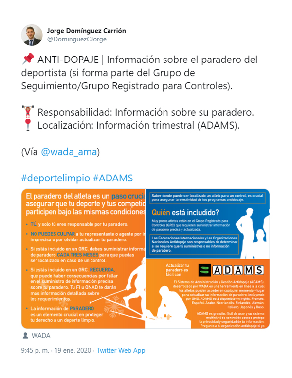 Profesional en Educación y Anti-Dopaje, nacido en Madrid y actualmente trabajando para la empresa Professional Worldwide Controls, empresa líder en el sector deportivo y especializada en la recogida de muestras y planificación de controles anti-dopaje a nivel internacional.